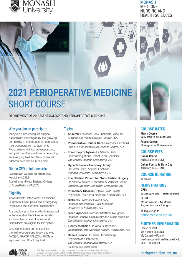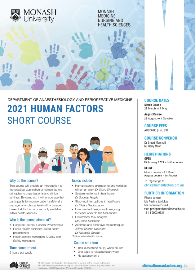 New short courses from the Department of Anaesthesiology and Perioperative Medicine, Monash University – Human Factors and Perioperative Medicine