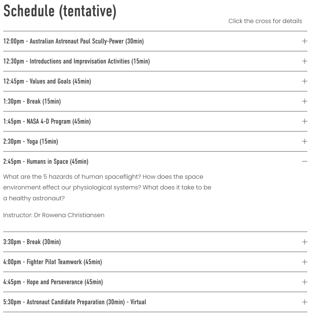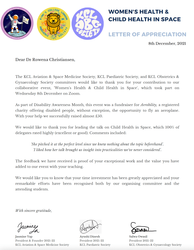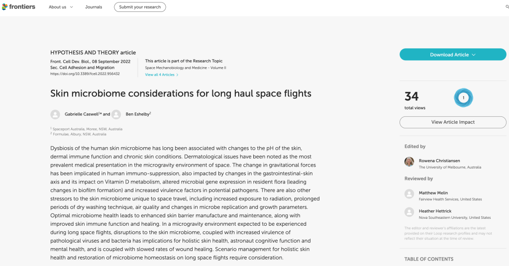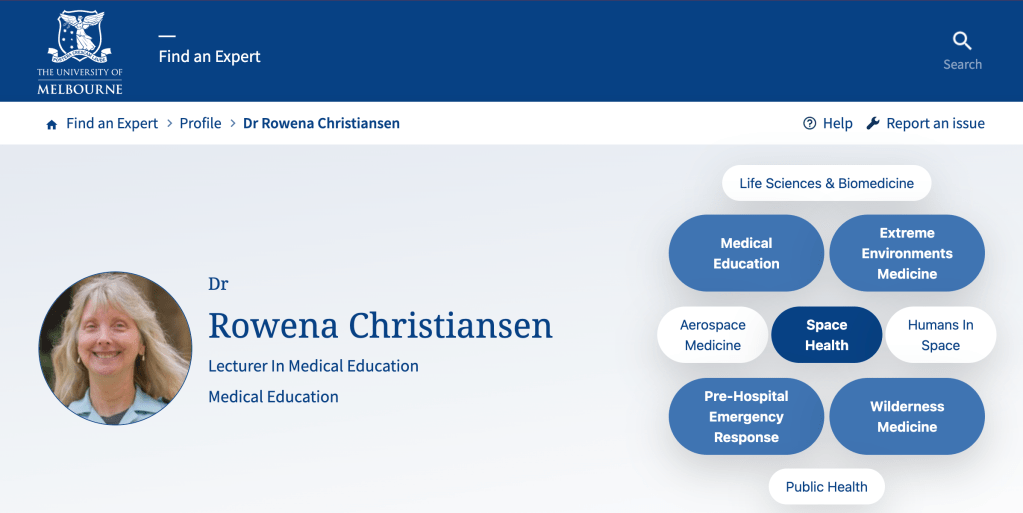 In early 2022, informal support for an interstate Australian university wishing to incorporate a ‘humans in space’ element into one of its healthcare courses.