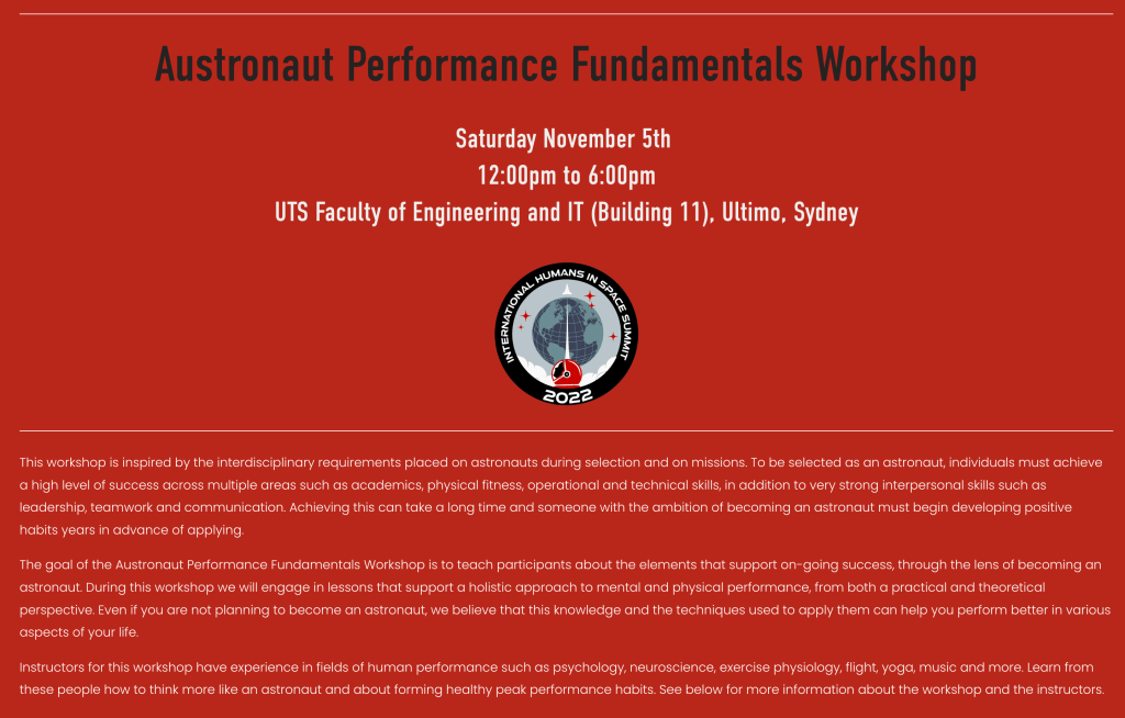 Austronaut Performance Fundamentals Workshop, Saturday November 5th, 12:00pm to 6:00pm, UTS Faculty of Engineering and IT (Building 11), Ultimo, Sydney.