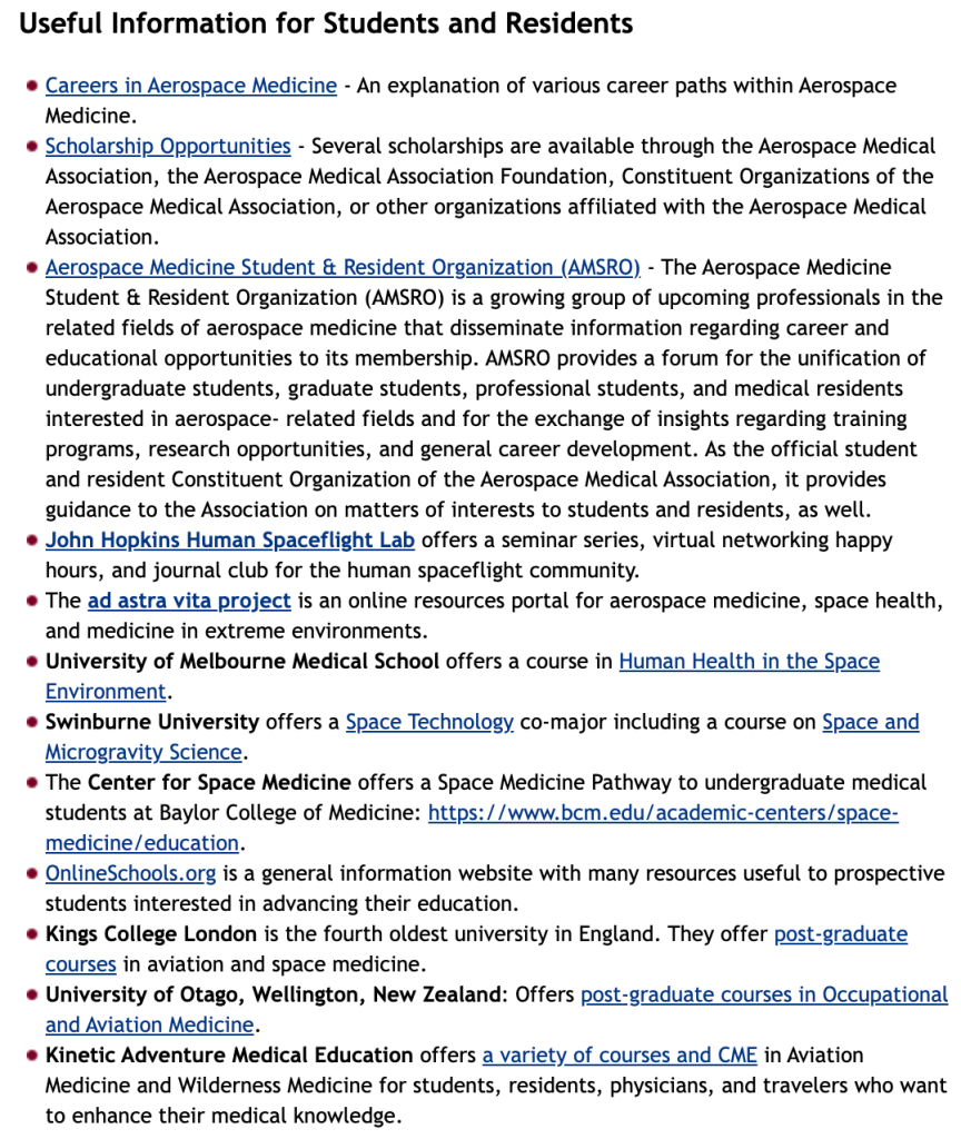 Contributed several items for the AsMA ‘For Students and Residents’ webpage: