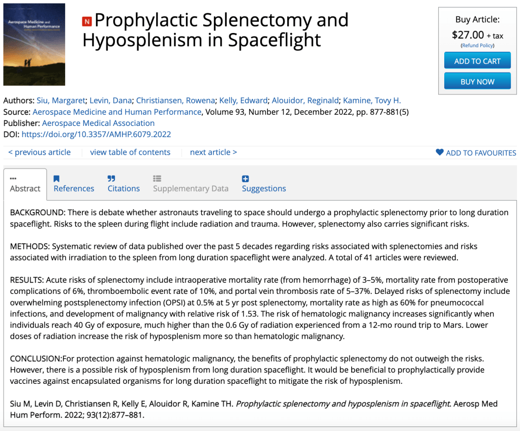 Collaborator on a new research project re “The Integrated Surgical Model: To predict on-board surgical risks and potential emergencies during deep-space travel”.