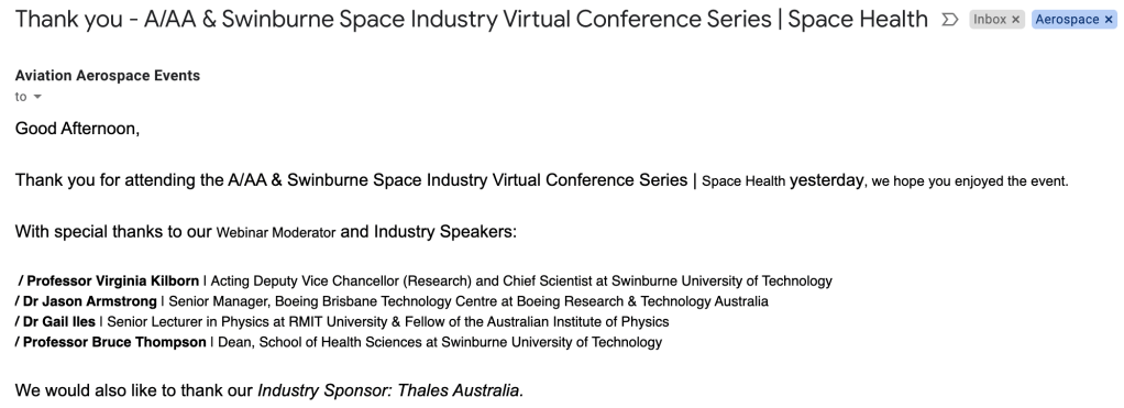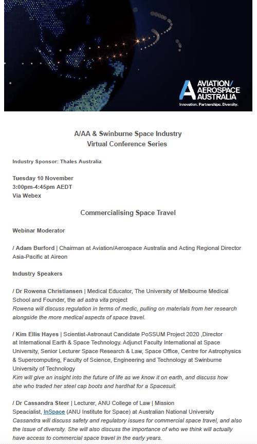 AIAA Adelaide Professionals Chapter Space Medicine Panel