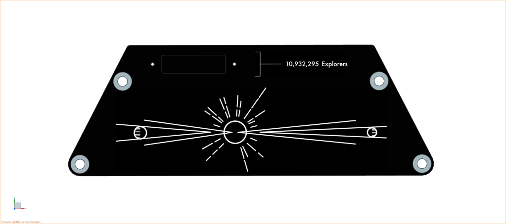 This artwork is etched on a metal plate attached to a crossbeam near the back of the Mars Perseverance rover. Three silicon chips containing 10.9 million names of Mars fans are mounted to the actual plate. In the center of the anodized plate, the Sun shines brightly, giving light to both Earth and Mars. The Sun’s rays feature some hidden Morse code, spelling out a message of unity for our global community: “Explore as One.” (February 26, 2021)