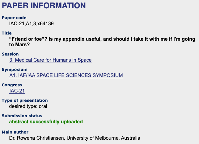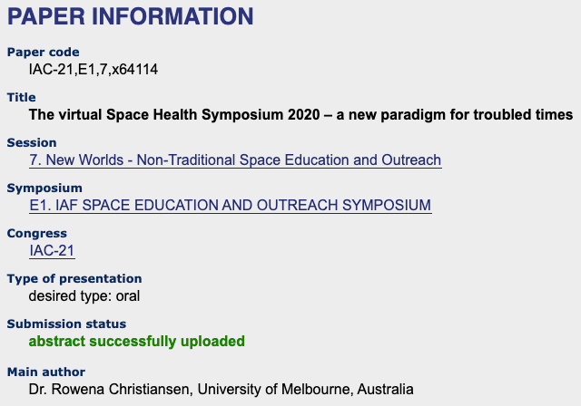 Abstracts accepted for the IAC conference in Dubai, October 2021