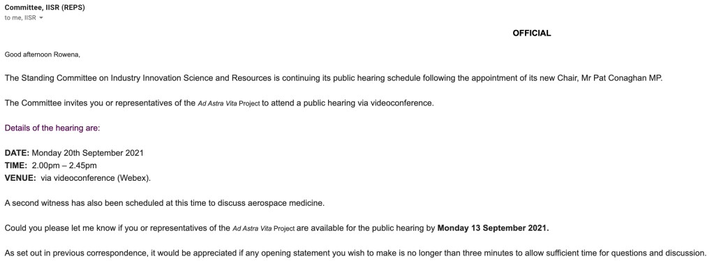 Public Hearing Invitation: Inquiry into Developing Australia’s Space Industry